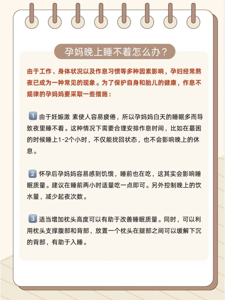 拯救胎宝睡眠的“急救包”,建立母胎同步生物钟,孕晚期坚持22:30前入睡,早晨7点起床(和宝宝一起“倒时差”),睡前1小时关闭电子设备,用暖光灯营造睡眠氛围(胎宝也怕“光污染”),左侧卧位+孕妇枕,改善子宫胎盘血流(让胎宝“躺得更舒服”)。也可以打造助眠环境,晚餐选小米粥、温牛奶(富含色氨酸,天然安眠药),避开咖啡、茶。每天散步30分钟(孕晚期可练蝴蝶式放松骨盆)。固定睡前流程泡脚→听胎教音乐→冥想,形成条件反射。若因工作必须熬夜:每2小时起身活动5分钟,避免胎宝“缺氧”。胎动异常时立即左侧卧位+轻抚肚子,1小时内未恢复需就医。熬夜后补觉,不超过2小时,避免打乱生物钟(胎宝也需要“规律作息”)